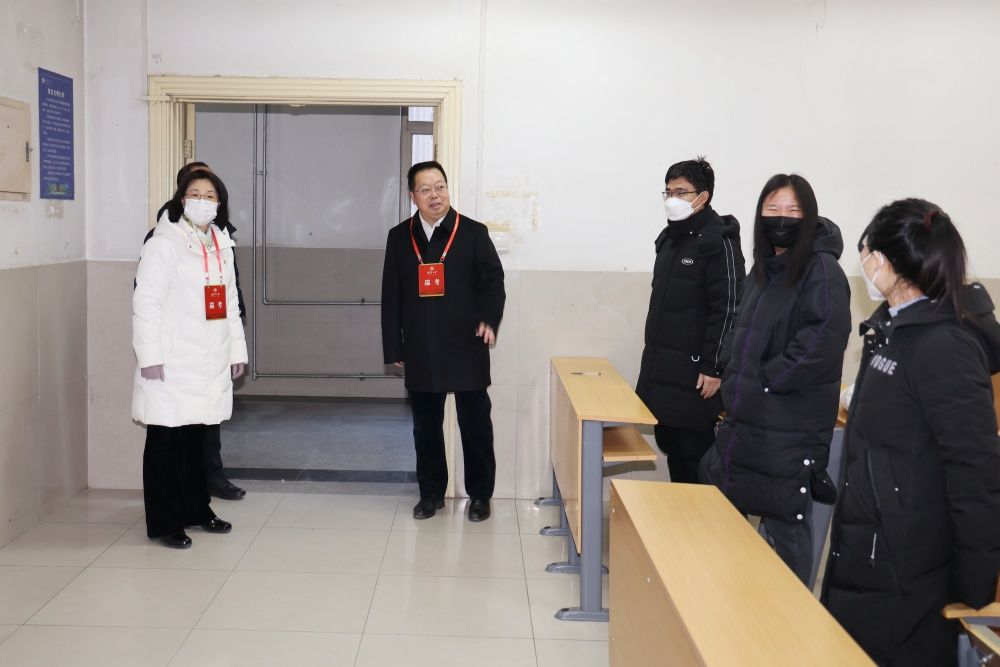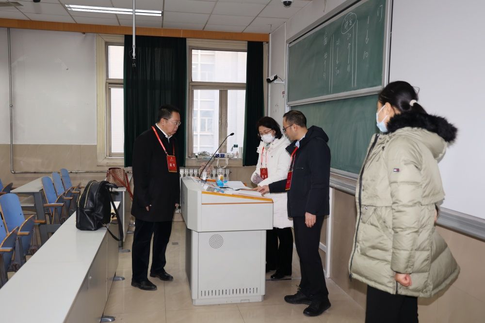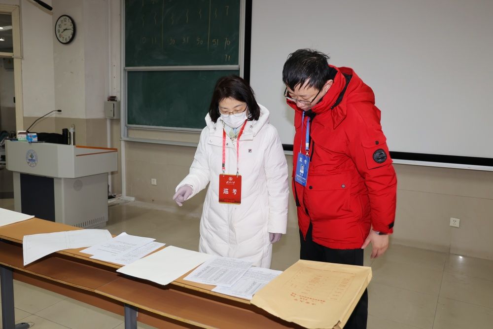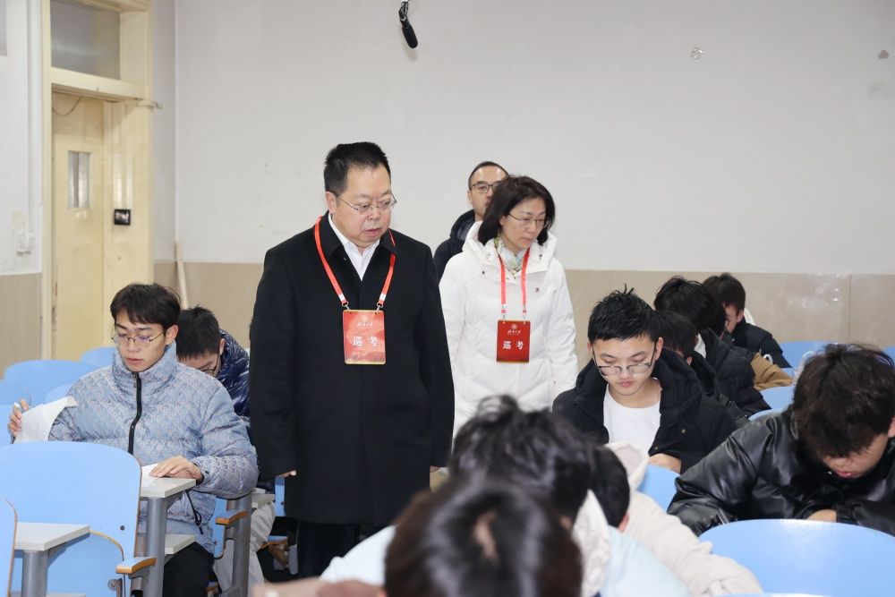 校領(lǐng)導(dǎo)仔細詢問了考場安排、監(jiān)考布置、公共課試卷收發(fā)等考試組織情況,重點檢查了考風(fēng)考紀、考場環(huán)境和監(jiān)考教師履責(zé)等情況,并與監(jiān)考教師就試卷規(guī)范、缺考情況、考試秩序等方面進行了交流。