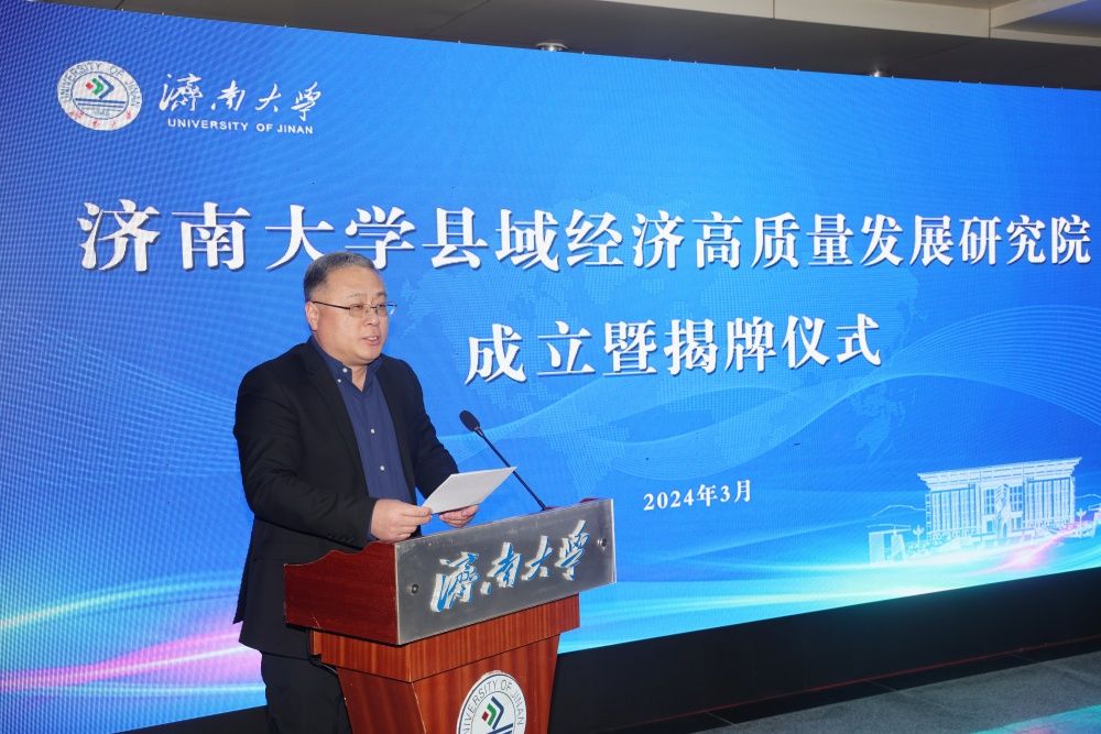劉宗明在致辭中代表濟(jì)南大學(xué)向史志遠(yuǎn)處長(zhǎng)的到來(lái)表示熱烈歡迎,向關(guān)心支持學(xué)校發(fā)展的省教育廳表示衷心感謝。他指出,縣域經(jīng)濟(jì)是國(guó)民經(jīng)濟(jì)的重要組成部分,是推動(dòng)經(jīng)濟(jì)社會(huì)發(fā)展的重要力量。山東省委省政府著力打造縣域經(jīng)濟(jì)高質(zhì)量發(fā)展新引擎,縣域經(jīng)濟(jì)發(fā)展面臨新形勢(shì)、迎來(lái)新機(jī)遇。劉宗明表示,研究院的成立是貫徹落實(shí)黨中央決策部署、省委工作要求和學(xué)校黨委具體安排的重要舉措,對(duì)深化校地合作、賦能縣域發(fā)展、實(shí)現(xiàn)互利共贏具有重要意義。劉宗明強(qiáng)調(diào),研究院要扎實(shí)開展工作,在服務(wù)縣域高質(zhì)量發(fā)展中努力提高服務(wù)能力和水平,發(fā)出濟(jì)大聲音、作出濟(jì)大貢獻(xiàn)、形成濟(jì)大成果,切實(shí)為高水平大學(xué)建設(shè)、中國(guó)式現(xiàn)代化山東實(shí)踐蓄勢(shì)添能。