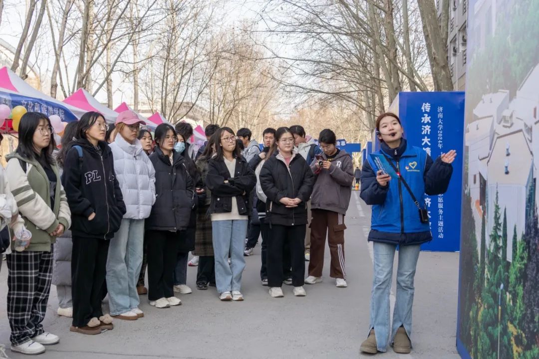 本次活動分為學生青年志愿者講述濟大故事和專職團干部介紹志愿服務工作品牌兩個部分。濟大故事宣講活動現場設置了八個校園標志性景觀,從學生視角切入,以時間為軸,生動展示濟大學子從入學到畢業、再到成為校友回饋母校的成長歷程;以空間為軸,由升華廣場開始,志愿者一路由東向西,介紹途徑的人文景觀及其精神內涵。同時,將校史校情、第一課堂教學、第二課堂活動等內容融入宣講細節,旨在講清楚學校的發展軌跡、辦學特色與治學成就,展示濟南大學良好的校風、教風、學風,引導師生鑒往知今,感恩教書育人、默默奉獻的濟大教職工和衷愛母校、服務社會的歷屆濟大學子,并以此激勵后學愛校榮校,在繼往開來中傳承濟大精神。活動期間,該宣講以共青團“開學第一課”的形式定點向全校師生開放,濟大師生可以團支部為單位進行線上預約。