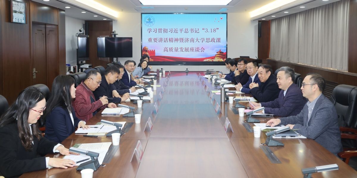 在習(xí)近平總書記“3.18”重要講話五周年之際,3月13日上午,學(xué)校召開學(xué)習(xí)貫徹習(xí)近平總書記“3.18”重要講話精神暨濟南大學(xué)思政課高質(zhì)量發(fā)展座談會。山東大學(xué)世界政黨研究中心主任王韶興、濟南市教育局思想政治教育處處長王翔宇受邀參加座談會,校長劉宗明出席座談會并講話。學(xué)校黨委副書記查玉喜主持座談會,黨委宣傳部、教務(wù)處、社科處、馬克思主義學(xué)院負責(zé)同志和師生代表參加座談會。