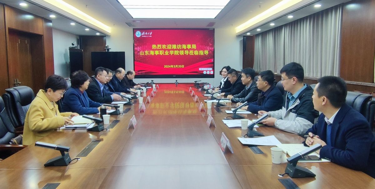 3月20日上午,濰坊海事局黨委書記、局長劉磊,山東海事職業(yè)學(xué)院代理校長徐立清一行來我校調(diào)研。校長劉宗明、副校長陳月輝出席活動,管理科學(xué)與工程學(xué)院相關(guān)人員參加活動。