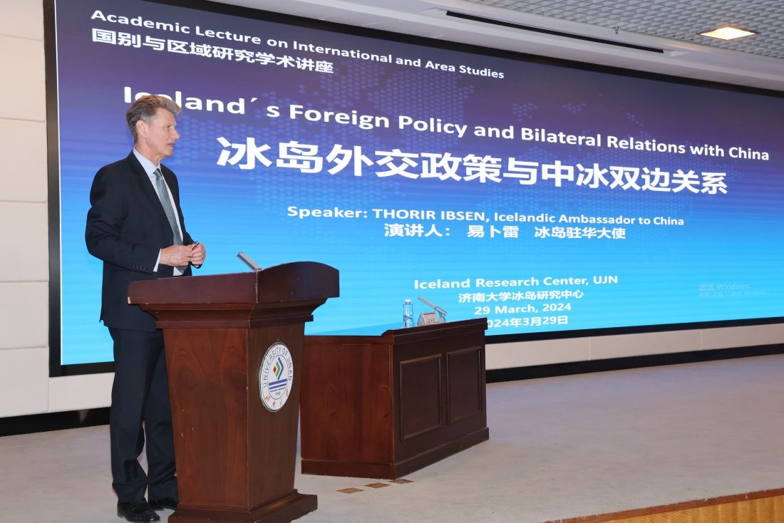 下午,應(yīng)我校冰島研究中心邀請,易卜雷大使在第一報告廳作題為《冰島外交政策與中冰雙邊關(guān)系》的報告,來自文學(xué)院、外國語學(xué)院、政法學(xué)院、馬克思主義學(xué)院及冰島研究中心等300余名師生參加報告會。易卜雷大使介紹了冰島的歷史及發(fā)展概況、冰島外交政策、中冰友好交往史,并表達了進一步發(fā)展中冰兩國友好關(guān)系的愿望。報告結(jié)束后,在場師生從冰島留學(xué)、冰島旅游、冰島歷史發(fā)展、中冰文化交流等方面與大使積極互動交流。
