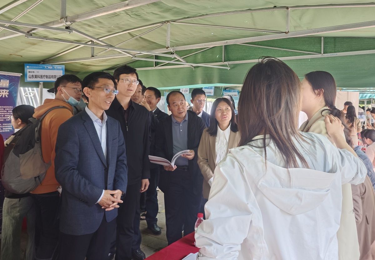 招聘會現場,李強一行與參會單位和畢業生親切交流,聽取用人單位對我校人才培養、專業建設、就業服務等方面的意見建議,深入了解用人單位發展狀況、人才需求等情況,詳細詢問畢業生的就業意向與求職進展,勉勵畢業生要樹立正確的就業觀,要把個人意愿和社會需求結合起來,充分發揮自身優勢,從實際出發做好職業選擇。李強表示,校友是學校的寶貴財富,感謝廣大校友企業長期以來積極支持母校畢業生就業創業工作,學校將全力支持校友企業、校企合作企業招聘工作,做到校企一條心,堅持“請進來,走出去”,努力實現為黨育人、為國育才,全面提高人才培養質量。