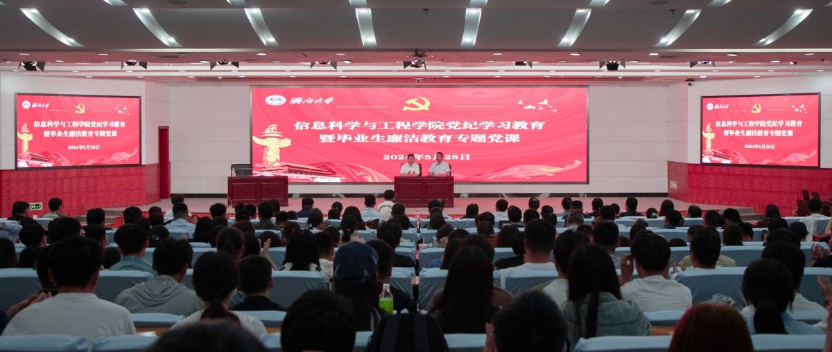 信息科學與工程學院黨委將繼續(xù)圍繞中央、省委和學校黨委部署要求,扎實開展黨紀學習教育,教育引導全體黨員切實做到“學紀、知紀、明紀、守紀”,真正達到“受警醒、明底線、知敬畏”的目的,落實全面從嚴治黨要求,加強基層黨建工作,以高質(zhì)量黨建推動學校教育事業(yè)和立德樹人工作高質(zhì)量發(fā)展。