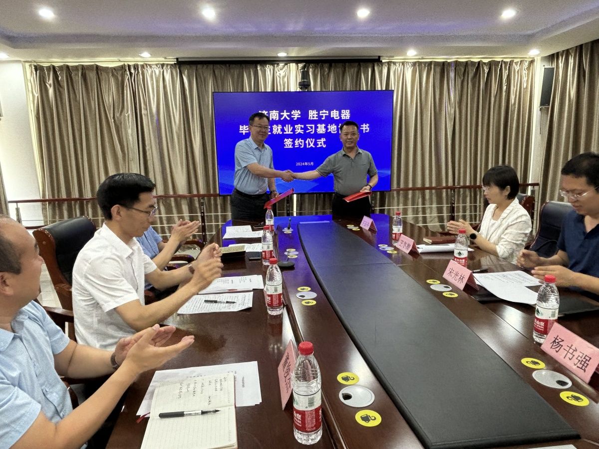李強(qiáng)針對(duì)我校的學(xué)科建設(shè)、人才培養(yǎng)、師資隊(duì)伍、科研成果與轉(zhuǎn)化、校企合作平臺(tái)、畢業(yè)生就業(yè)情況等情況展開介紹,希望雙方以本次合作交流為契機(jī),建立常態(tài)化交流合作機(jī)制,形成以推動(dòng)畢業(yè)生高質(zhì)量就業(yè)、助力當(dāng)?shù)馗哔|(zhì)量發(fā)展為導(dǎo)向的校地校企合作模式,實(shí)現(xiàn)戰(zhàn)略共贏。會(huì)上,商學(xué)院與山東勝寧電器有限公司簽署就業(yè)實(shí)習(xí)基地協(xié)議,李強(qiáng)、宋光林為“濟(jì)南大學(xué)就業(yè)實(shí)習(xí)基地”揭牌。