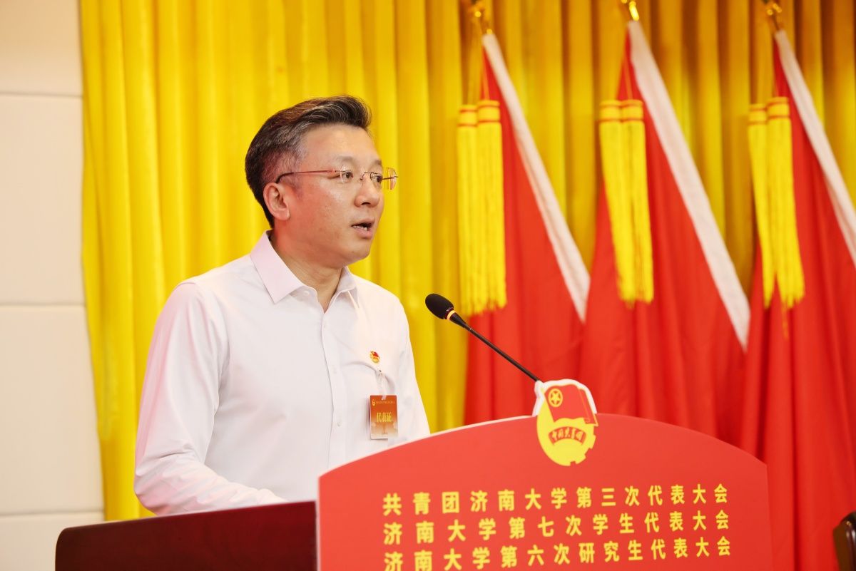 牢記囑托跟黨走,挺膺擔(dān)當(dāng)赴新程。6月13日,共青團濟南大學(xué)第三次代表大會、濟南大學(xué)第七次學(xué)生代表大會、濟南大學(xué)第六次研究生代表大會在第一學(xué)術(shù)報告廳召開。共青團山東省委副書記彭莉、共青團濟南市委副書記石明媛、共青團濟南市委學(xué)少部部長董玲、共青團市中區(qū)委書記黨淼、齊魯工業(yè)大學(xué)(山東省科學(xué)院)團委書記萬金存應(yīng)邀出席開幕會。學(xué)校領(lǐng)導(dǎo)劉春華、劉宗明、張勇、續(xù)鐵、商華、王霞、李強、黃加棟、賈海寧、滕晉、徐慶國參會。