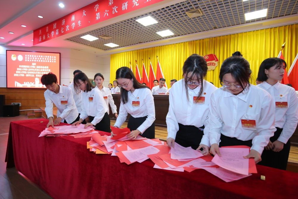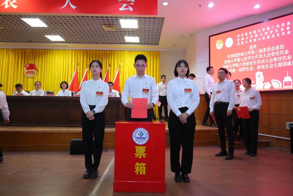 按照大會議程和選舉辦法,大會聽取并審議了共青團濟南大學(xué)第二屆委員會工作報告、濟南大學(xué)學(xué)生會工作報告、濟南大學(xué)研究生會工作報告;與會代表選舉產(chǎn)生了共青團濟南大學(xué)第三屆委員會、濟南大學(xué)第七次學(xué)生代表大會、濟南大學(xué)第六次研究生代表大會常任代表和新一屆學(xué)生會、研究生會主席團;審議并通過《共青團濟南大學(xué)第三次代表大會關(guān)于共青團濟南大學(xué)第二屆委員會工作報告的決議(草案)》《濟南大學(xué)第七次學(xué)生代表大會、濟南大學(xué)第六次研究生代表大會關(guān)于濟南大學(xué)學(xué)生會工作報告、濟南大學(xué)研究生會工作報告的決議(草案)》。