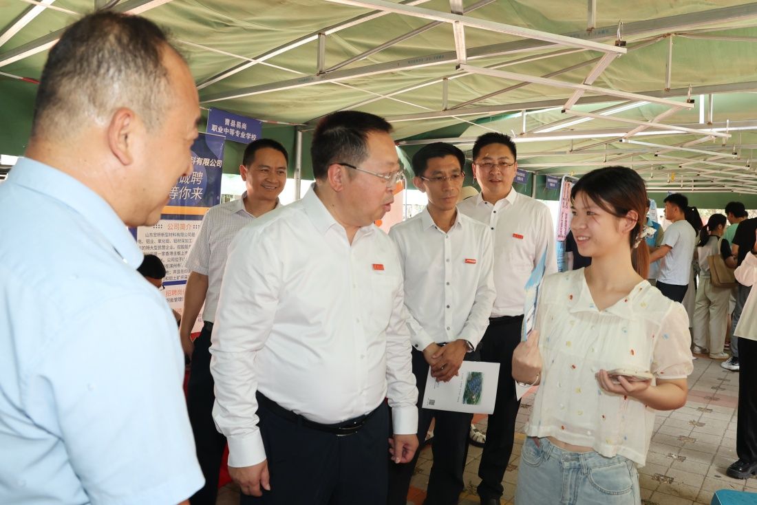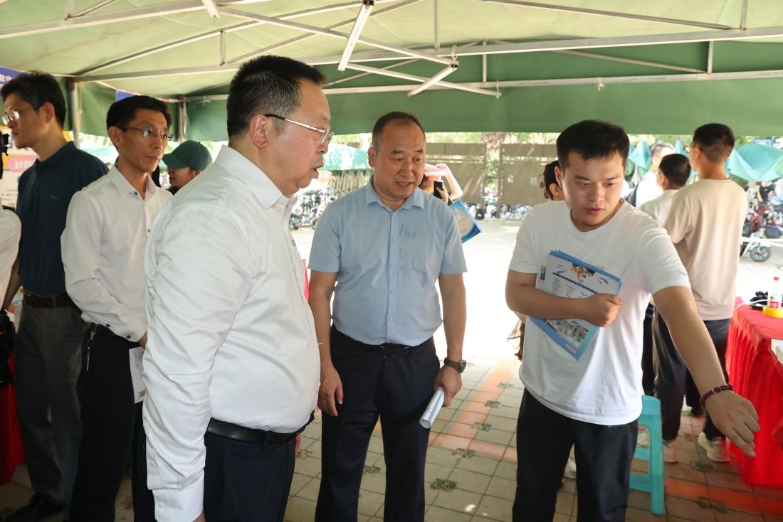 6月13日上午,“逐夢同行 共赴山?!本瓦x山東2024屆畢業(yè)生“百日沖刺”行動專場招聘會在第十教學(xué)樓前舉辦。學(xué)校校長劉宗明,黨委常委、副校長李強,學(xué)校相關(guān)職能部門負責(zé)人來到招聘會現(xiàn)場指導(dǎo)工作,在展位前與單位招聘人員以及畢業(yè)生們進行了深入交流。