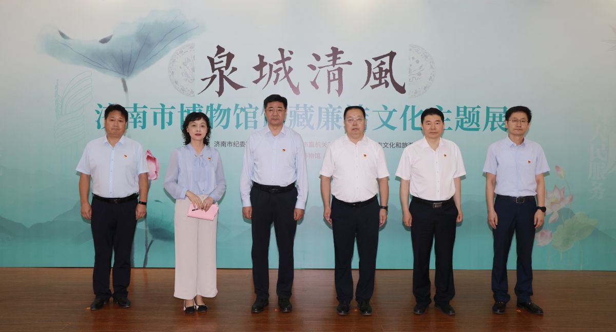 6月20日上午,“泉城清風(fēng)——濟南市博物館館藏廉潔文化主題展”暨濟南市博物館-濟南大學(xué)廉潔文化教育基地共建儀式在濟南大學(xué)舜道藝術(shù)館舉行。濟南市委常委、市紀(jì)委書記、市監(jiān)委主任楊光忠,濟南市文化和旅游局黨組書記、局長馬利,濟南市博物館黨總支書記、館長何民,學(xué)校黨委副書記、校長劉宗明,黨委常委、紀(jì)委書記、省監(jiān)委駐濟南大學(xué)監(jiān)察專員續(xù)鐵,黨委常委、組織部部長滕晉出席儀式。濟南市紀(jì)委監(jiān)委、濟南市文化和旅游局、濟南市博物館相關(guān)領(lǐng)導(dǎo)、學(xué)校相關(guān)職能部門負(fù)責(zé)同志和師生代表參加儀式。儀式由續(xù)鐵主持。
