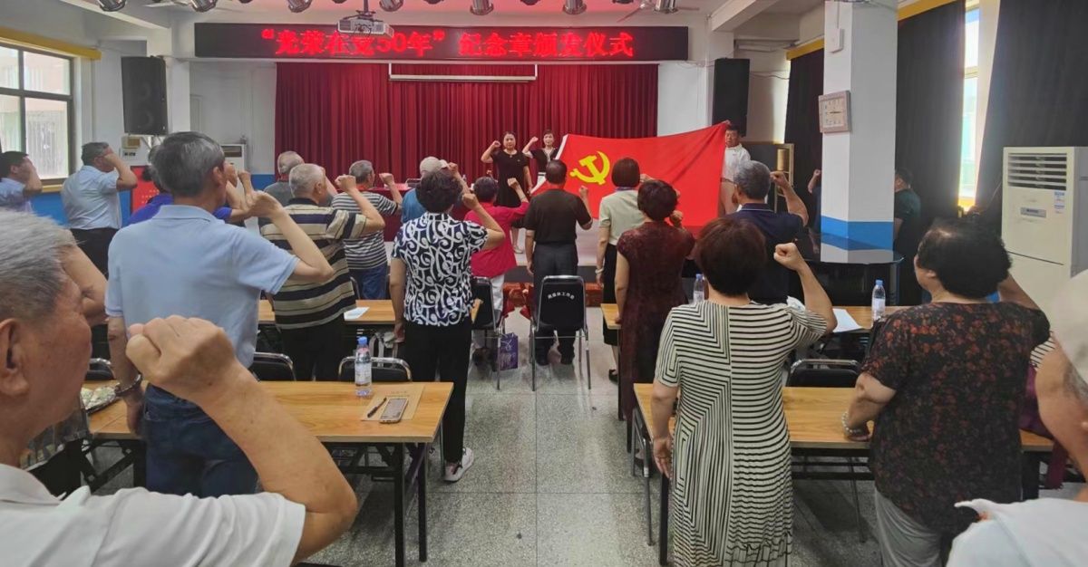 五十年黨齡,五十載榮光,一枚枚紀念章銘刻著50年崢嶸歲月,記錄著老黨員們的初心誓言。全體與會黨員面向黨旗重溫入黨誓詞,通過此次頒發(fā)儀式,引導廣大退休黨員增強老黨員的榮譽感、歸屬感和使命感,激勵廣大黨員堅定理想信念,踐行榜樣精神,矢志不渝跟黨走、樂享生活葆活力,為黨員同志上了一堂生動的榜樣黨課,老同志們紛紛表示,將時刻牢記入黨誓詞,不忘初心、牢記使命,為學校的改革發(fā)展、和諧穩(wěn)定作出自己的貢獻。