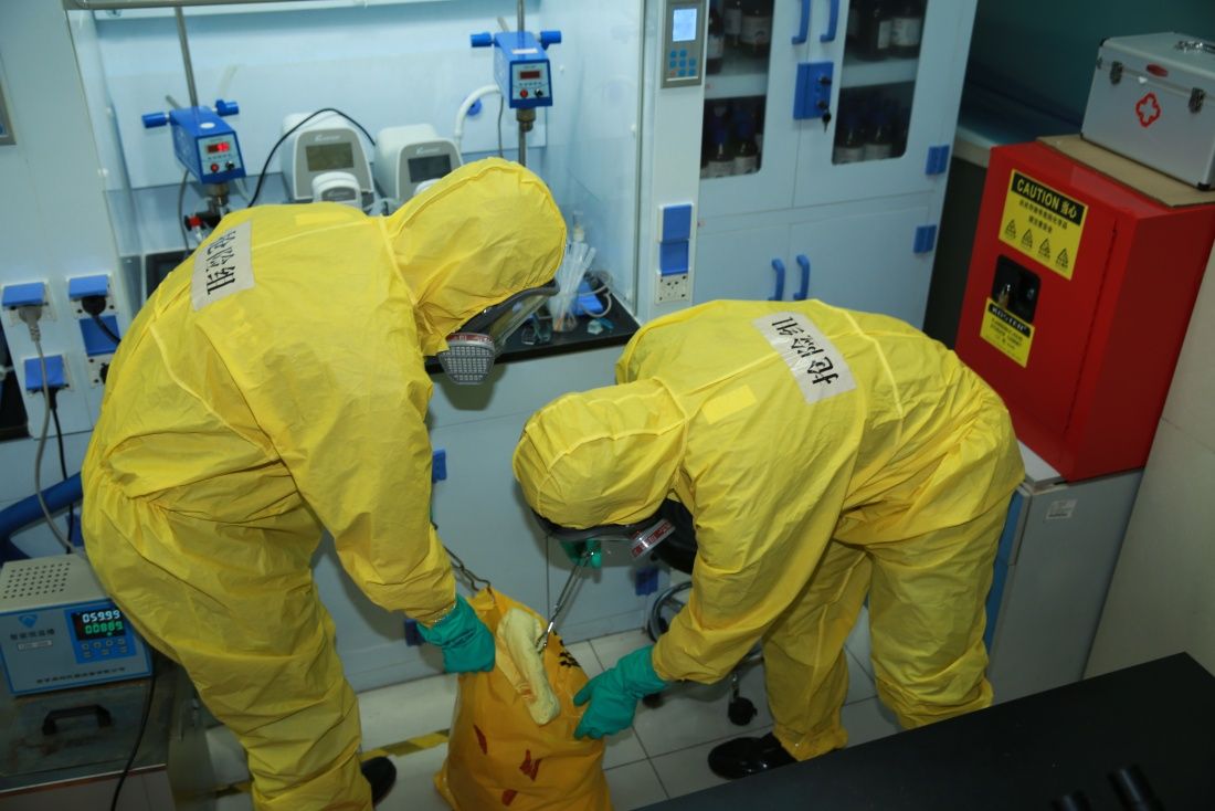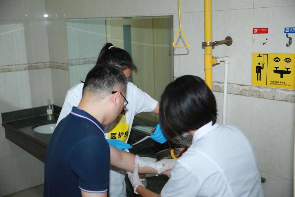 本次應急演練主要模擬實驗過程中因意外發(fā)生氫氟酸泄漏,出現人員受傷情景下的應急處置過程,包括事故報警、人員疏散、醫(yī)療救護、現場搶險、輿情發(fā)布等實驗室安全事故應急涉及的全要素。本次演練以“實戰(zhàn)+觀摩”的形式,由實驗室人員實施實戰(zhàn)演練,其他師生以視頻直播的方式進行觀摩,達到了檢驗和示范的雙重目標,增強了參與人員的安全防護意識,提高了參演和觀摩人員的風險防范意識和自救互救能力。