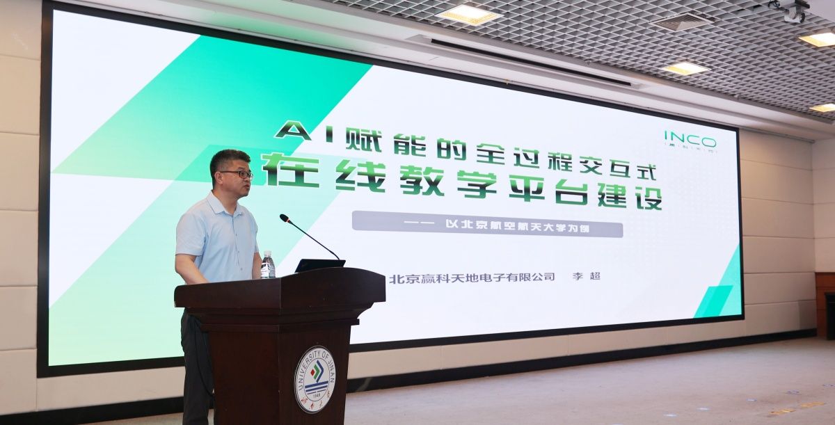 北京贏科天地電子有限公司副總經(jīng)理李超以《AI賦能的全過程交互式在線教學(xué)平臺(tái)建設(shè)》為題,介紹了在線教育平臺(tái)及AI教學(xué)助手在北京航空航天大學(xué)的建設(shè)應(yīng)用情況,闡釋了數(shù)字教育,企業(yè)何為的問題。