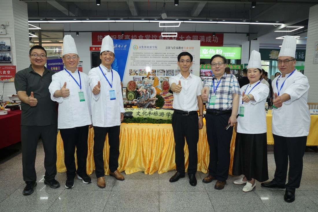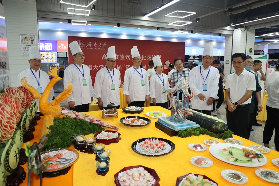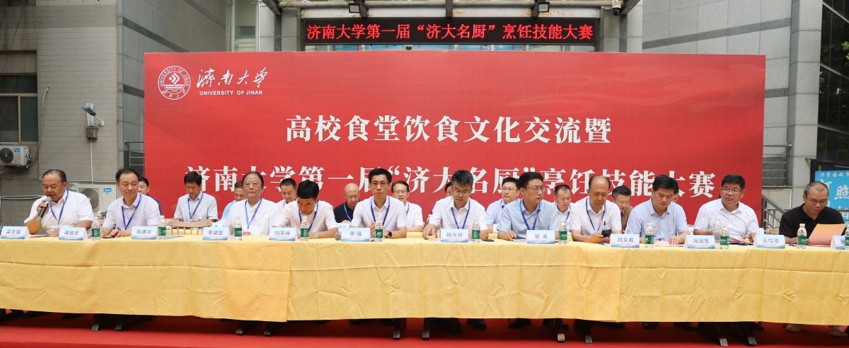 7月8日上午,高校食堂飲食文化交流暨濟(jì)南大學(xué)第一屆“濟(jì)大名廚”烹飪技能大賽在第八食堂進(jìn)行。山東省教育發(fā)展服務(wù)中心黨委書記、主任魏光祥,學(xué)校黨委常委、副校長李強(qiáng),山東省學(xué)校后勤協(xié)會(huì)副會(huì)長兼秘書長劉學(xué)祥,中國烹飪大師山東省烹飪協(xié)會(huì)監(jiān)事長、濟(jì)南烹飪協(xié)會(huì)會(huì)長李建國,山東師范大學(xué)、山東農(nóng)業(yè)大學(xué)、山東財(cái)經(jīng)大學(xué)、山東建筑大學(xué)、山東交通學(xué)院、山東女子學(xué)院等后勤管理部門負(fù)責(zé)人,學(xué)校黨委宣傳部、學(xué)生工作部(處)、黨委保衛(wèi)部 安全管理處、計(jì)劃財(cái)務(wù)處、工會(huì)、團(tuán)委、文化和旅游學(xué)院、后勤管理處等相關(guān)負(fù)責(zé)人共同參加此次活動(dòng)。