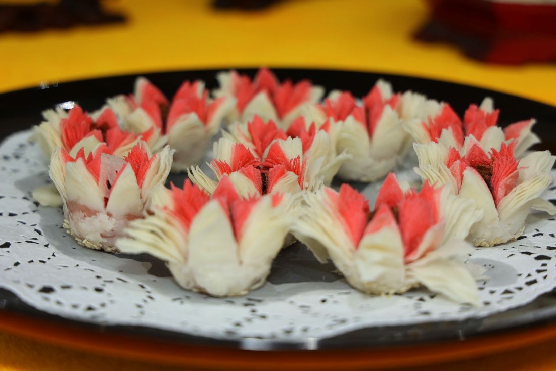 本次比賽共八支代表隊(duì)40余名選手參加,分為熱菜和面點(diǎn)兩項(xiàng),指定菜品1道和自選菜品1道。另外還有26個(gè)展臺(tái),其中宴席展臺(tái)6個(gè),分別由5家餐飲公司和濟(jì)南大學(xué)文化和旅游學(xué)院烹飪與營養(yǎng)教育專業(yè)的同學(xué)們設(shè)計(jì);原材料展臺(tái)19個(gè),包括米、面、油、調(diào)料、凍品等,由學(xué)校食堂供應(yīng)商設(shè)計(jì)展出。