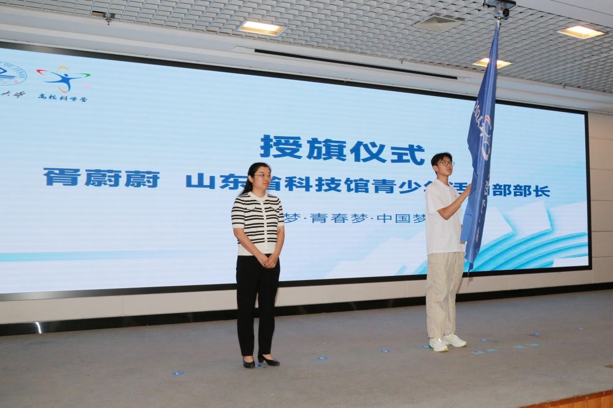 胥蔚蔚為本次齊魯高??茖W(xué)營(yíng)濟(jì)南大學(xué)分營(yíng)授旗。