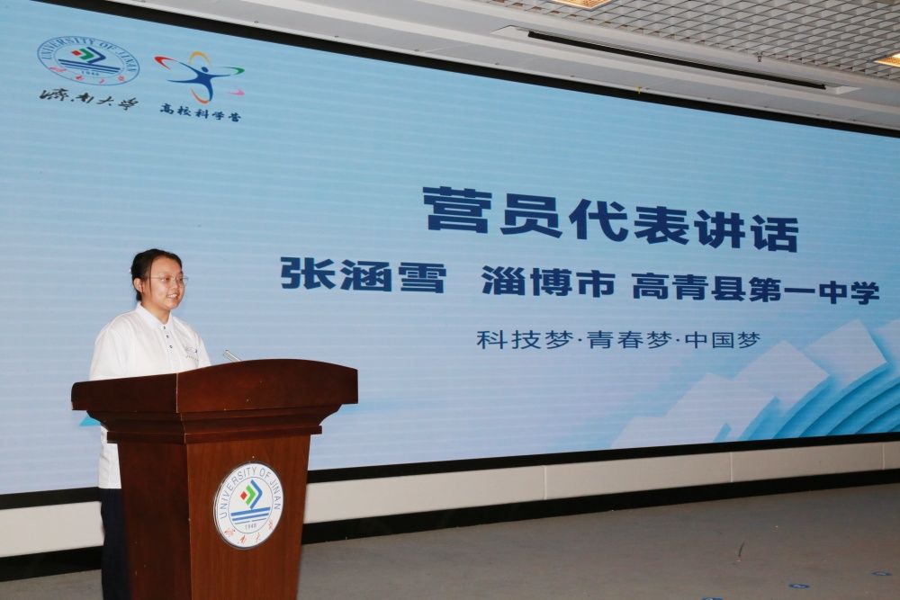 在開營(yíng)儀式上,張峰對(duì)參加2024齊魯高??茖W(xué)營(yíng)濟(jì)南大學(xué)分營(yíng)活動(dòng)的師生表示熱烈歡迎,詳細(xì)介紹了濟(jì)南大學(xué)的辦學(xué)沿革、發(fā)展情況和科普工作的總體概況以及此次活動(dòng)的主要內(nèi)容。勉勵(lì)同學(xué)們珍惜寶貴的學(xué)習(xí)機(jī)會(huì),厚植家國(guó)情懷,樹立報(bào)國(guó)之志,懷揣好奇之心,深入體驗(yàn)大學(xué)生活,增強(qiáng)創(chuàng)新意識(shí),在活動(dòng)中收獲友誼、快樂,展現(xiàn)新時(shí)代少年昂揚(yáng)向上的精神風(fēng)貌。