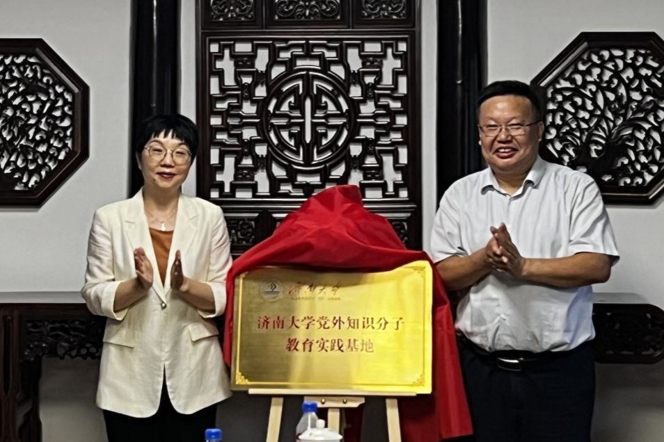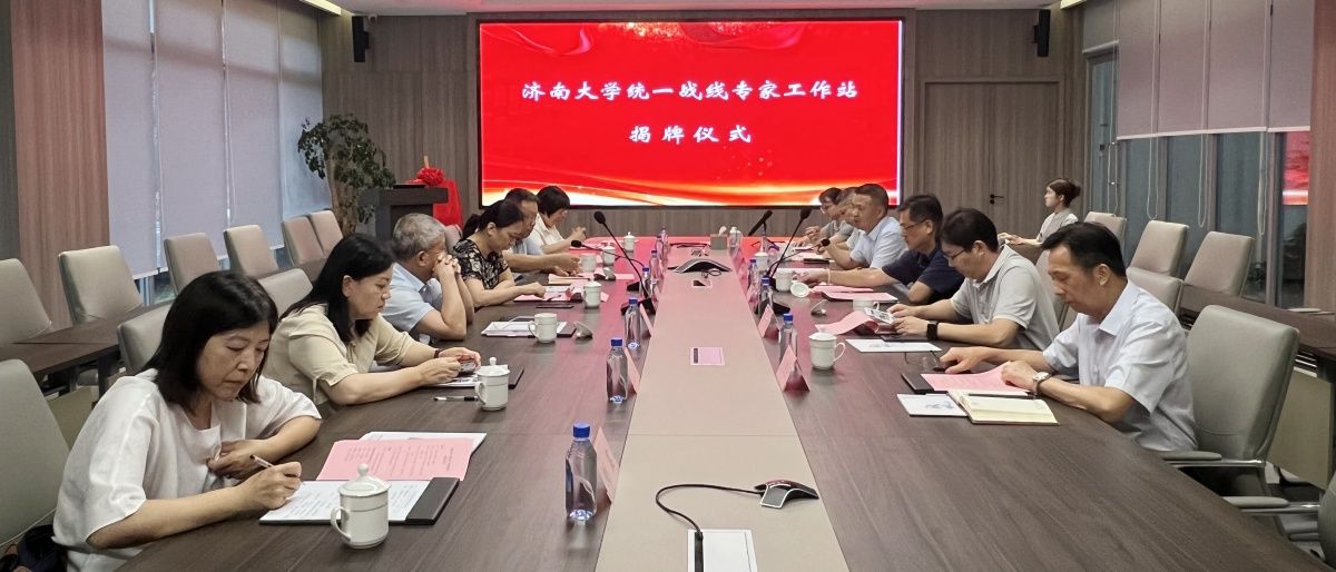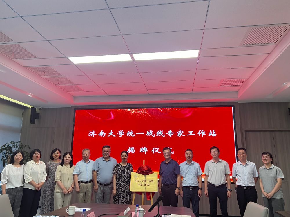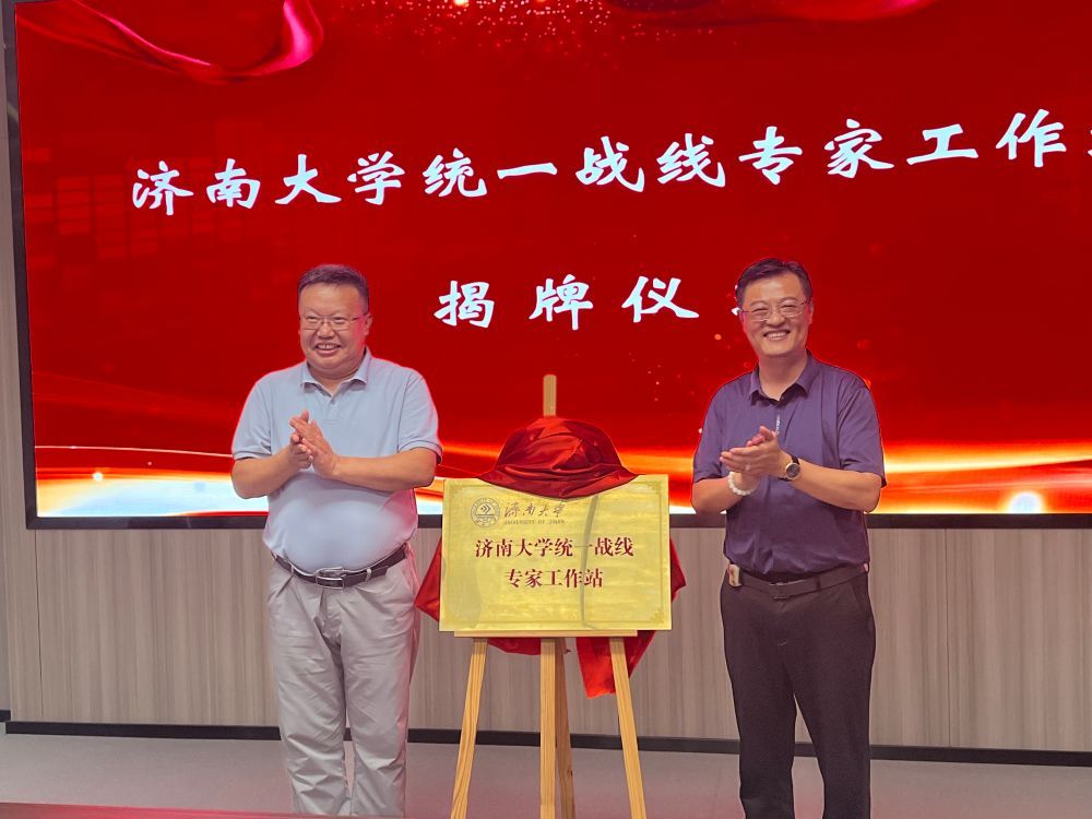 徐慶國、朱駿偉共同為“濟南大學(xué)統(tǒng)一戰(zhàn)線專家工作站”揭牌。