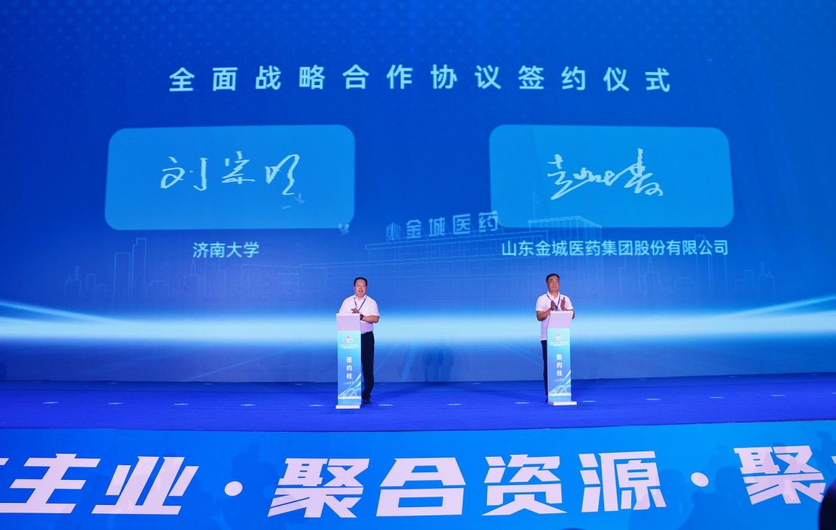 8月8日,金城醫(yī)藥集團成立20周年暨高質(zhì)量發(fā)展大會在淄博會展中心舉行。學(xué)校黨委副書記、校長劉宗明,黨委常委、副校長黃加棟應(yīng)邀出席會議,中國工程院院士、浙江工業(yè)大學(xué)生物工程學(xué)院教授鄭裕國,NMPA南方醫(yī)藥經(jīng)濟研究所原黨委書記林建寧,山東理工大學(xué)黨委書記胡興禹,淄博市政協(xié)原黨組書記、主席陳家金,淄博市政協(xié)原黨組書記、主席叢錫鋼,淄博市委副書記、政法委書記楊旭東,淄博市委常委、統(tǒng)戰(zhàn)部部長蓋衛(wèi)星,淄博市科技局黨組書記、局長熊欣,淄博市商務(wù)局黨組書記、局長殷啟迪,淄川區(qū)委書記程勤等出席會議,金城實業(yè)集團董事長趙鴻富、金城醫(yī)藥集團董事長趙葉青,金城醫(yī)藥集團總工程師、首席科學(xué)家鄭庚修、金城集團員工代表及合作企業(yè)代表約300人參加慶典活動,學(xué)校科技處、化學(xué)化工學(xué)院等部門學(xué)院相關(guān)負責(zé)人員參加了大會。