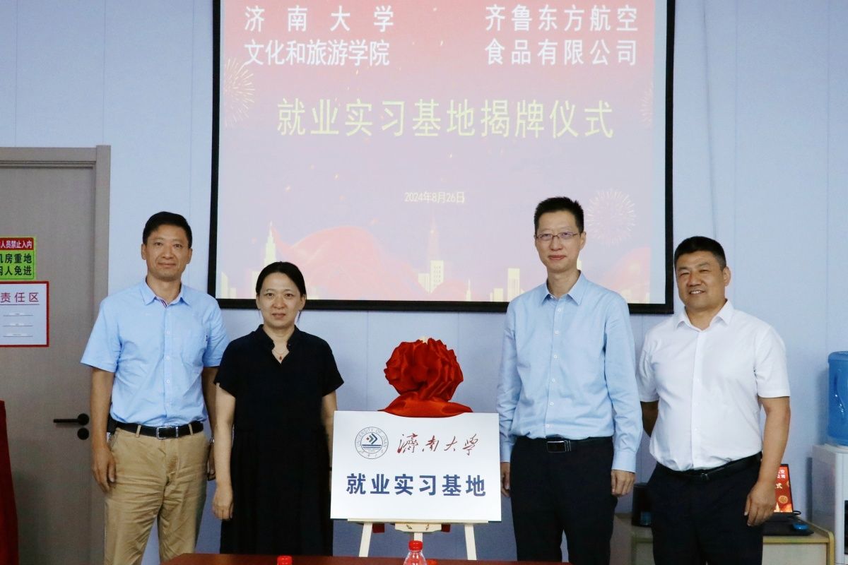 為進(jìn)一步加強(qiáng)校企合作,促進(jìn)教育與產(chǎn)業(yè)深度融合,提升人才培養(yǎng)質(zhì)量,推動(dòng)畢業(yè)生高質(zhì)量就業(yè),助力企業(yè)創(chuàng)新發(fā)展。8月26日,濟(jì)南大學(xué)黨委常委、副校長(zhǎng)商華帶隊(duì)赴齊魯東方航空食品有限公司調(diào)研交流、走訪校友,并舉行“濟(jì)南大學(xué)就業(yè)實(shí)習(xí)基地”簽約揭牌儀式。齊魯東方航空食品有限公司總經(jīng)理朱永健、副總經(jīng)理連軍安陪同座談,文化和旅游學(xué)院相關(guān)負(fù)責(zé)人參加調(diào)研活動(dòng)。