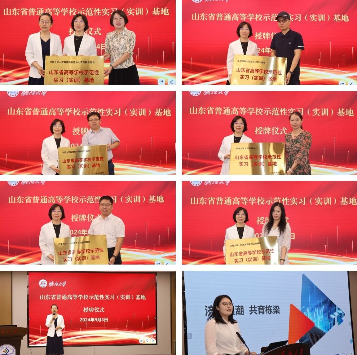 為進(jìn)一步加強(qiáng)科教產(chǎn)教融合,提高學(xué)校實習(xí)(實訓(xùn))基地建設(shè)水平,會議邀請浪潮軟件智慧教育事業(yè)本部副經(jīng)理李浩瑜、濟(jì)南特殊教育中心校長于生丹作典型發(fā)言,圍繞人才培養(yǎng)質(zhì)量提升和培養(yǎng)模式改革分享本科生實習(xí)(實訓(xùn))基地的建設(shè)經(jīng)驗。王霞為我校獲批的6個山東省普通高等學(xué)校示范性實習(xí)(實訓(xùn))基地授牌。
