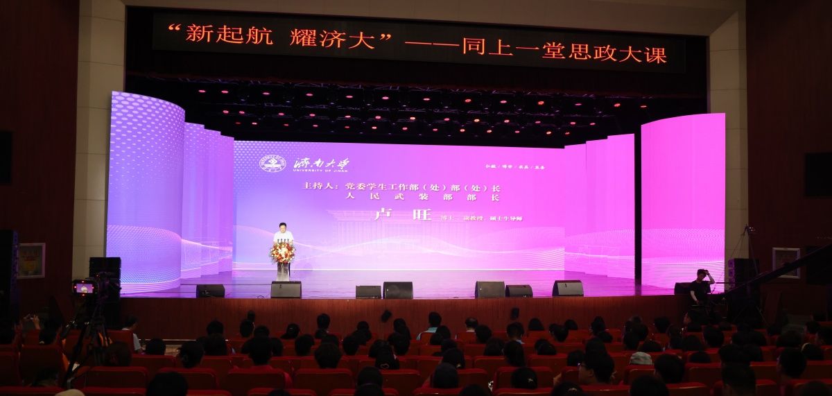 為深入學(xué)習(xí)貫徹黨的二十屆三中全會(huì)精神和習(xí)近平總書記關(guān)于加快建設(shè)教育強(qiáng)國(guó)的重要論述,全面落實(shí)學(xué)校四屆五次全委會(huì)擴(kuò)大會(huì)議精神,教育引導(dǎo)2024級(jí)新生堅(jiān)定理想信念、厚植愛黨愛國(guó)、愛校榮校情懷,9月9日,學(xué)校在大禮堂舉辦“新起航 耀濟(jì)大”——同上一堂思政大課活動(dòng),邀請(qǐng)山東省優(yōu)秀教師、山東高校思想政治課教學(xué)名師、濟(jì)南大學(xué)教學(xué)名師、我校馬克思主義學(xué)院概論部主任李朋忠教授為新生授課,全體2024級(jí)新生通過線上線下相結(jié)合的方式參與學(xué)習(xí),教務(wù)處相關(guān)負(fù)責(zé)人以及各學(xué)院新生輔導(dǎo)員參加活動(dòng)。活動(dòng)由黨委學(xué)生工作部(處)部(處)長(zhǎng) 武裝部部長(zhǎng)盧旺主持。