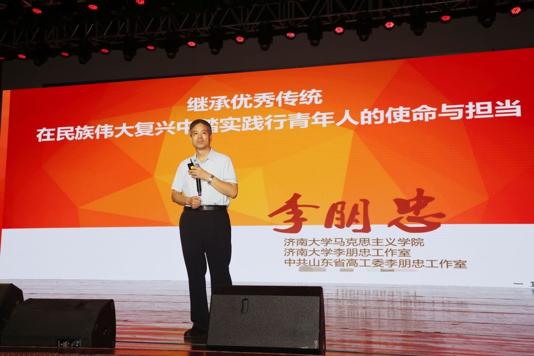 李朋忠以《繼承優(yōu)秀傳統(tǒng),在民族偉大復(fù)興中踏實(shí)踐行青年人的使命與擔(dān)當(dāng)》為題,從與眾不同的中華民族、與眾不同的中國(guó)共產(chǎn)黨人、與眾不同的濟(jì)南大學(xué)、立大志明大德成大才擔(dān)大任四個(gè)方面進(jìn)行了授課,闡釋了中華文明為什么博大精深、中華民族為什么生生不息,回答了馬克思主義為什么“行”、中國(guó)共產(chǎn)黨為什么“能”、中國(guó)特色社會(huì)主義為什么“好”,解讀了校訓(xùn)“弘毅、博學(xué)、求真、至善”的濃厚內(nèi)蘊(yùn),講述了濟(jì)大人立志成長(zhǎng)成才的路徑方法。課后同學(xué)們紛紛表示,李教授的課旁征博引、幽默風(fēng)趣,諄諄教誨、發(fā)人深省,讓“有意義”的課堂變得更“有意思”。