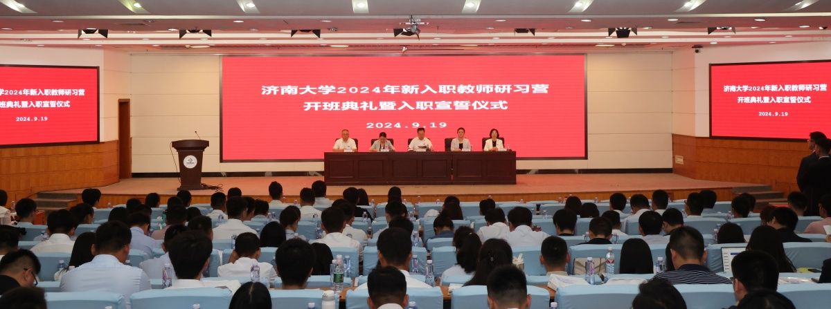 9月19日,濟(jì)南大學(xué)2024年新入職教師研習(xí)營(yíng)開班典禮暨入職宣誓儀式在學(xué)校第一學(xué)術(shù)報(bào)告廳舉行。學(xué)校黨委副書記、校長(zhǎng)劉宗明出席活動(dòng)并講話,黨委常委、副校長(zhǎng)商華,黨委常委、副校長(zhǎng)王霞,黨委常委、副校長(zhǎng)黃加棟,老教師代表、“齊魯最美教師”我校“綠色化學(xué)與傳感分析教師團(tuán)隊(duì)”負(fù)責(zé)人魏琴教授,黨委學(xué)生工作部(處)、黨委教師工作部 教師發(fā)展中心、人力資源處、教務(wù)處、科技處、社科處等部門負(fù)責(zé)人,各教學(xué)學(xué)院院長(zhǎng),新入職教師學(xué)院導(dǎo)師代表,2024年新入職教師研習(xí)營(yíng)全體學(xué)員以及相關(guān)人員參加活動(dòng)。