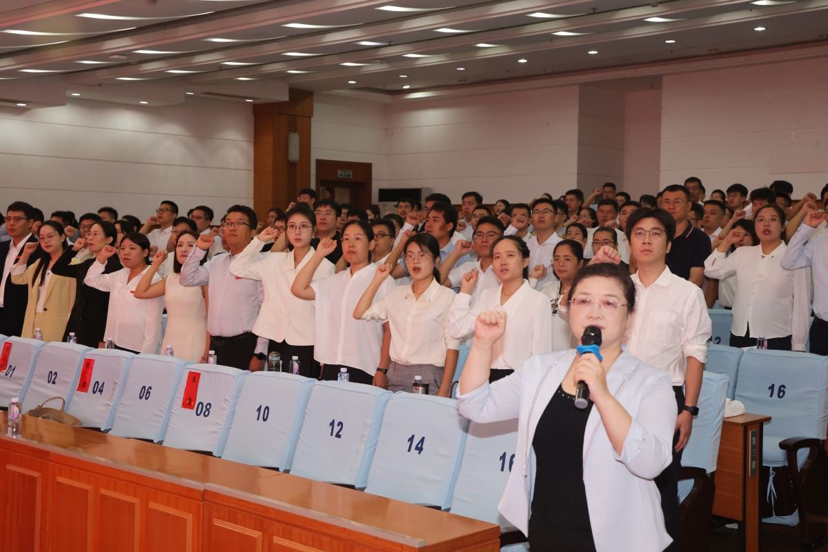 面向國(guó)旗,全體新入職教師高舉右手,在老教師代表魏琴教授的帶領(lǐng)下莊嚴(yán)宣誓,誓言聲聲彰顯著新教師們對(duì)未來的堅(jiān)定信念和崇高追求。