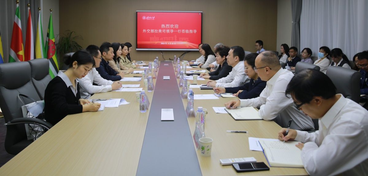 9月22日上午,外交部拉美司副司長瞿瑜輝一行蒞臨我校加勒比地區(qū)研究中心調(diào)研指導(dǎo),山東省委外辦副主任、省對(duì)外友協(xié)常務(wù)副會(huì)長陳白薇,學(xué)校黨委書記劉春華,濟(jì)南市人民對(duì)外友好協(xié)會(huì)常務(wù)副會(huì)長龐龍,學(xué)校黨委常委、副校長黃加棟等陪同調(diào)研。