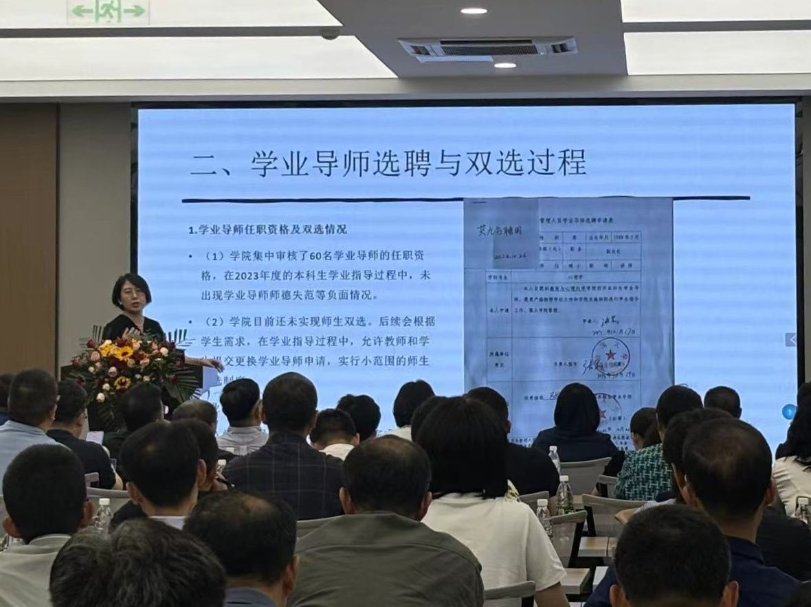 為進一步完善“三全育人”工作局面,提高人才培養(yǎng)質(zhì)量,推動學(xué)業(yè)導(dǎo)師制落細落實,9月27日上午,學(xué)校黨委常委、副校長王霞主持召開了2024年度本科生學(xué)業(yè)導(dǎo)師制工作推進會,黨委巡察工作領(lǐng)導(dǎo)小組辦公室、黨委學(xué)生工作部(處)、人力資源處、教務(wù)處、計劃財務(wù)處等職能部門負責(zé)人,部分學(xué)業(yè)導(dǎo)師代表,各教學(xué)學(xué)院院長、分管學(xué)生工作的黨委副書記、分管本科教學(xué)工作的副院長、教辦主任和教務(wù)處相關(guān)工作人員參加會議。