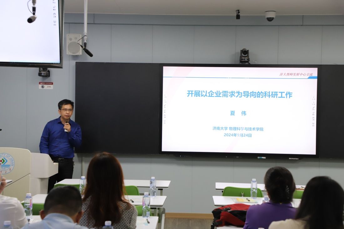 物理科學(xué)與技術(shù)學(xué)院教授夏偉以“開展以企業(yè)需求為導(dǎo)向的科研工作”為題,分享了其個(gè)人長期深耕科研領(lǐng)域和校企合作的成果、經(jīng)驗(yàn)和體會(huì),鼓勵(lì)青年教師要主動(dòng)融入團(tuán)隊(duì)平臺(tái),聚焦產(chǎn)業(yè)企業(yè)需求,積累科研成果,增強(qiáng)自我發(fā)展、科研創(chuàng)新和社會(huì)服務(wù)能力。