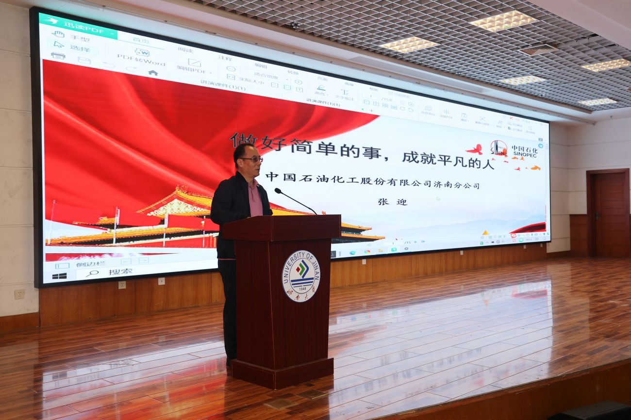 為進(jìn)一步弘揚(yáng)工匠精神、厚植工匠文化,10月8日,化學(xué)化工學(xué)院舉辦“奮進(jìn)新征程 建功新時(shí)代”勞模工匠進(jìn)課堂活動(dòng)。學(xué)校黨委常委、副校長(zhǎng)李強(qiáng)出席活動(dòng)并致辭,山東省石油化學(xué)工會(huì)四級(jí)調(diào)研員郭一博、濟(jì)南市總工會(huì)一級(jí)調(diào)研員常江出席活動(dòng),濟(jì)南市總工會(huì)、濟(jì)南大學(xué)化學(xué)化工學(xué)院、濟(jì)南市石化醫(yī)藥工會(huì)聯(lián)合會(huì)等部門(mén)負(fù)責(zé)人參加活動(dòng)。活動(dòng)邀請(qǐng)山東省勞動(dòng)模范、山東省五一勞動(dòng)獎(jiǎng)?wù)芦@得者、中國(guó)石化濟(jì)南煉化公司首席技師張迎作分享報(bào)告?;顒?dòng)由化學(xué)化工學(xué)院黨委副書(shū)記白雪飛主持,濟(jì)南市石化醫(yī)藥工會(huì)聯(lián)合會(huì)所屬企業(yè)職工代表、化學(xué)化工學(xué)院師生代表等300余人共同參加。