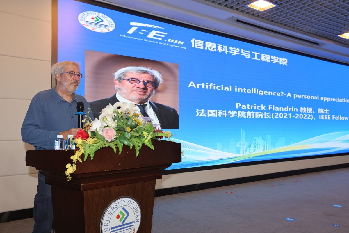 Patrick Flandrin院士感謝濟(jì)南大學(xué)的邀請,介紹了世界AI領(lǐng)域近幾年的最新發(fā)展情況、中法高校及科研院所近30年來的合作情況。他表示,濟(jì)南大學(xué)計算機(jī)科學(xué)與技術(shù)學(xué)科已經(jīng)有了很好的發(fā)展基礎(chǔ),希望與濟(jì)南大學(xué)在相關(guān)領(lǐng)域進(jìn)行深入合作。