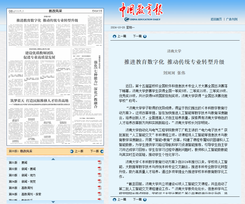 原文鏈接:《中國教育報》:濟南大學推進教育數(shù)字化 推動傳統(tǒng)專業(yè)轉(zhuǎn)型升級