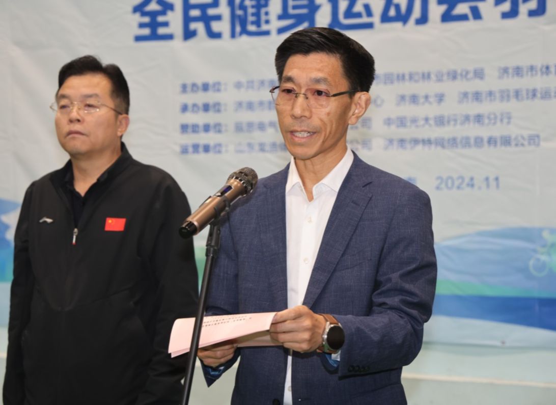 本次賽事由中共濟(jì)南市委宣傳部、濟(jì)南市園林和林業(yè)綠化局、濟(jì)南市體育局、濟(jì)南文旅發(fā)展集團(tuán)主辦。濟(jì)南大學(xué)黨委常委、副校長(zhǎng)李強(qiáng),濟(jì)南市體育局黨組成員、副局長(zhǎng)張居忠出席開(kāi)幕式。濟(jì)南市羽毛球運(yùn)動(dòng)協(xié)會(huì)、山東文旅傳媒集團(tuán)、辰思電氣(山東)有限公司、中國(guó)光大銀行泉城支行、山東龍浩體育發(fā)展有限公司、濟(jì)南大學(xué)體育學(xué)院有關(guān)負(fù)責(zé)同志參加活動(dòng)。