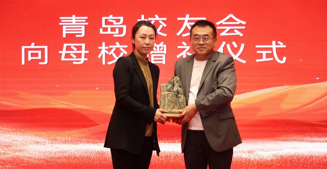 黃加棟、李木森為青島校友會(huì)企業(yè)家俱樂(lè)部揭牌。賀豐彬、徐建友、鄭建國(guó)為青島校友會(huì)籃球俱樂(lè)部、羽毛球俱樂(lè)部、足球俱樂(lè)部授牌。三位2024屆畢業(yè)生作為應(yīng)屆校友代表發(fā)言,表達(dá)了對(duì)母校悉心栽培的深深感激,及對(duì)青島校友會(huì)的感謝。李木森代表青島校友會(huì)理事會(huì)為母校贈(zèng)禮嶗山綠松石,綠松石象征著堅(jiān)韌與智慧,愿母校如綠松石般歷經(jīng)歲月仍散發(fā)光芒。