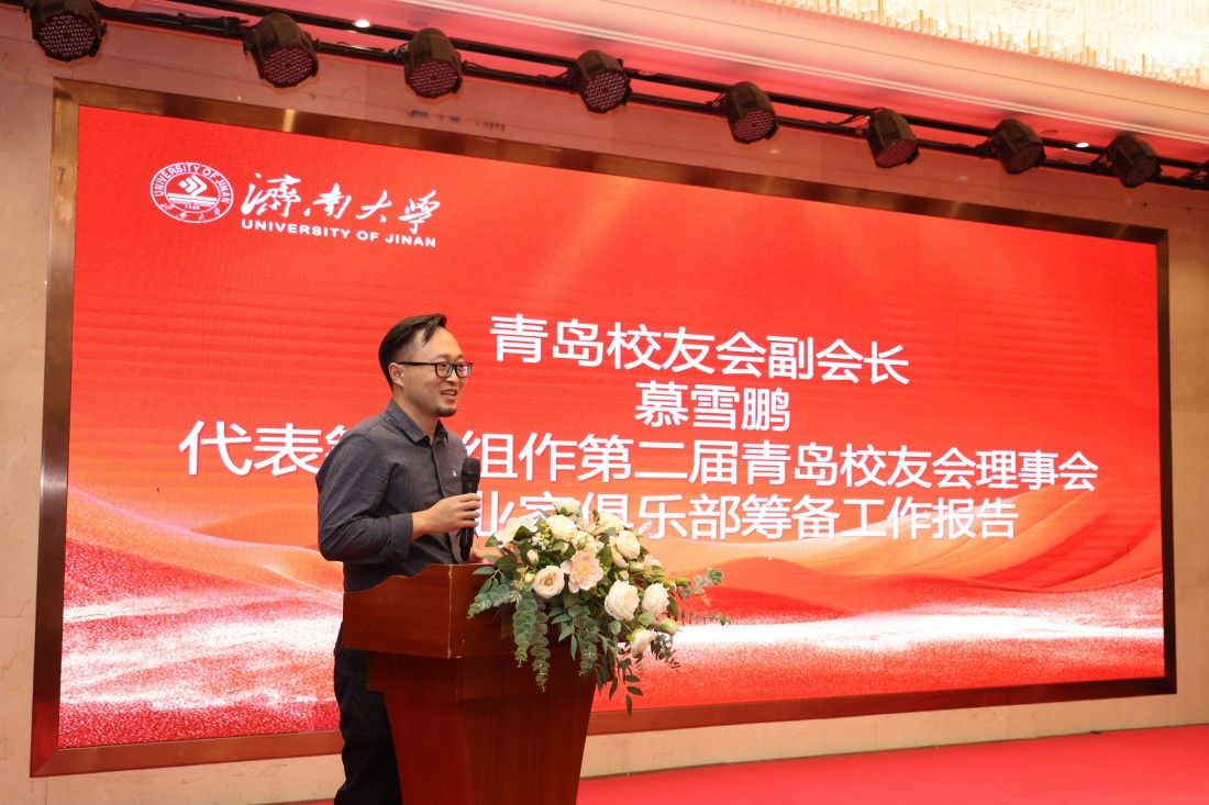 青島校友會(huì)副會(huì)長(zhǎng)慕雪鵬代表籌備組作第二屆青島校友會(huì)理事會(huì)暨企業(yè)家俱樂(lè)部籌備工作報(bào)告,期待校友們能夠攜手合作,為促進(jìn)濟(jì)南大學(xué)與青島校友之間的產(chǎn)學(xué)研合作作出新的更大貢獻(xiàn)。