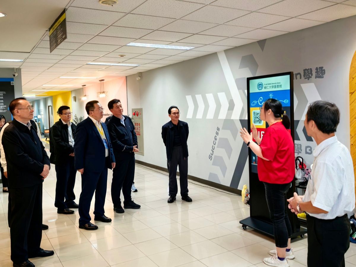 在臺灣輔仁大學(xué),劉宗明一行與輔仁大學(xué)校長藍(lán)易振,副校長李天行、王英洲等進(jìn)行了座談,并參觀了該校圖書館和醫(yī)學(xué)系。