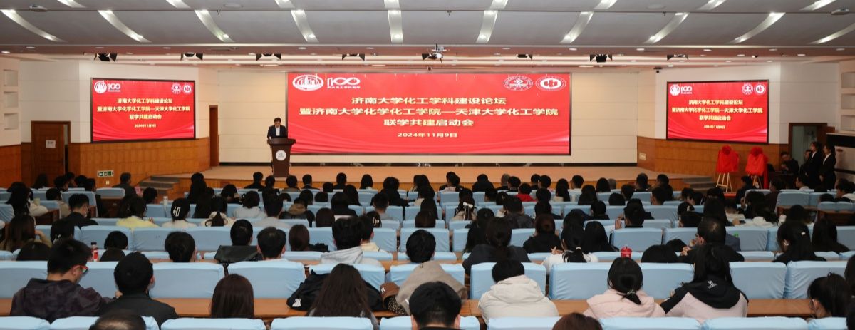 為進一步推動我?;瘜W工程與技術學科發(fā)展,提升學位點建設水平,凝練化學化工學科特色,11月9日,我校舉辦化工學科建設論壇暨濟南大學化學化工學院—天津大學化工學院聯(lián)學共建啟動會。本次論壇是天津大學化工學院為慶祝2025年天大化工學科百年華誕推出的“百年百場高峰論壇”活動之一。天津大學化工學院黨委書記、國家杰出青年基金獲得者汪懷遠,黨委副書記李晶、靳學峰,化工學院院長助理劉紅麗,山東省天津大學校友會化工分會副會長高貫雷等領導專家出席活動。濟南大學黨委副書記、校長劉宗明,黨委常委、副校長黃加棟,發(fā)展規(guī)劃與學科建設處、科技處、化學化工學院等相關部門負責人、教師、學生等300余人參加活動。會議由濟南大學化學化工學院黨委副書記、院長陳國柱主持。
