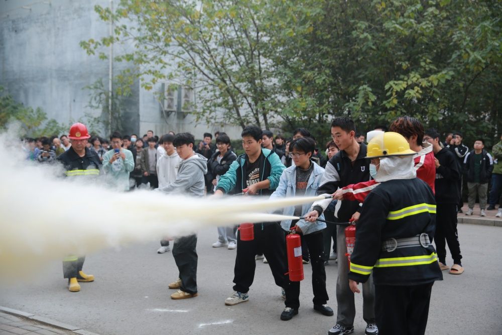 消防演練中,學(xué)27號(hào)、學(xué)30號(hào)公寓學(xué)生按照演練要求迅速反應(yīng),用濕毛巾捂住口鼻,彎腰低姿,有序疏散到指定地點(diǎn)。安全管理處工作人員對(duì)參加演練的師生進(jìn)行了安全教育,講解了宿舍內(nèi)違規(guī)用電的危害和火場(chǎng)逃生、自救、互救等方面的技巧,現(xiàn)場(chǎng)演示了滅火器的使用方法。在安全管理處專業(yè)人員的指導(dǎo)下,各學(xué)院輔導(dǎo)員、物業(yè)管理人員和學(xué)生依次進(jìn)行了滅火實(shí)戰(zhàn)演練,700余名師生參加了消防演練活動(dòng)。