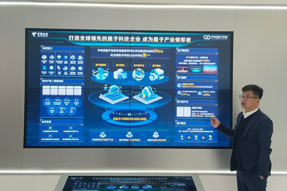 會(huì)議期間,中電信量子集團(tuán)華北公司總經(jīng)理武云超帶領(lǐng)參觀了電信數(shù)智化展廳,重點(diǎn)介紹了量子加密傳輸、量子通信等相關(guān)產(chǎn)業(yè)布局。中電信量子集團(tuán)華北公司副總經(jīng)理洪泰輝重點(diǎn)介紹了量子展區(qū),介紹了公司在量子城域網(wǎng)、量子通信教學(xué)、量子計(jì)算教學(xué)方面的優(yōu)勢(shì)。