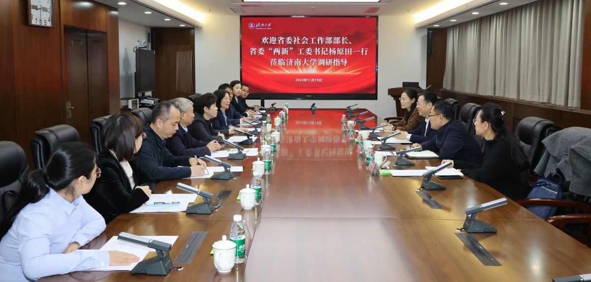 11月19日,山東省委社會工作部部長、省委“兩新”工委書記楊原田一行來校調(diào)研并座談。學(xué)校黨委書記劉春華,黨委常委、副校長王霞,副校長徐征和參加座談。