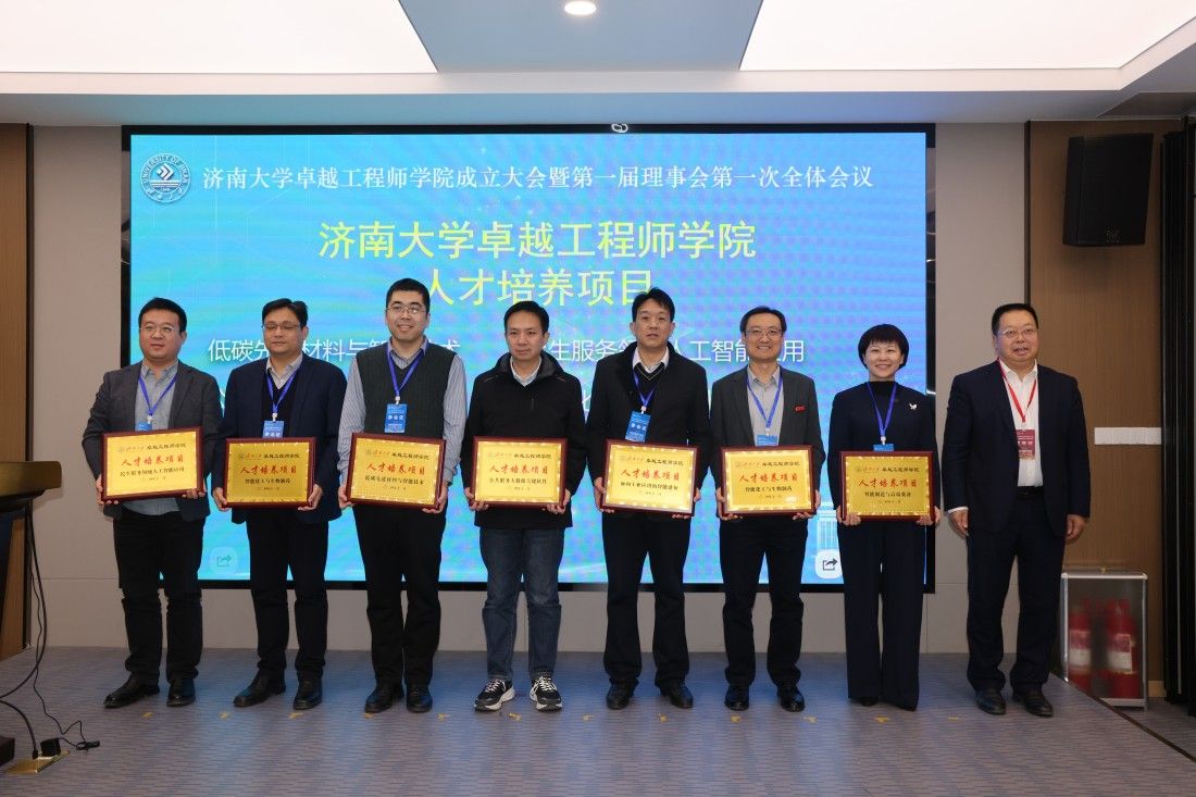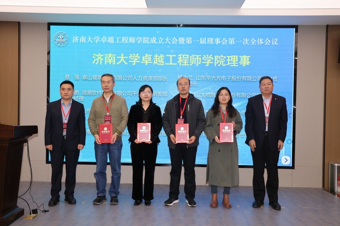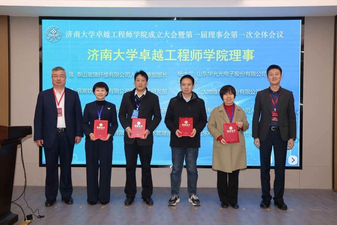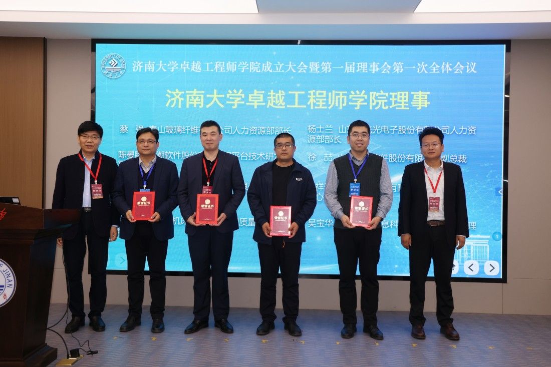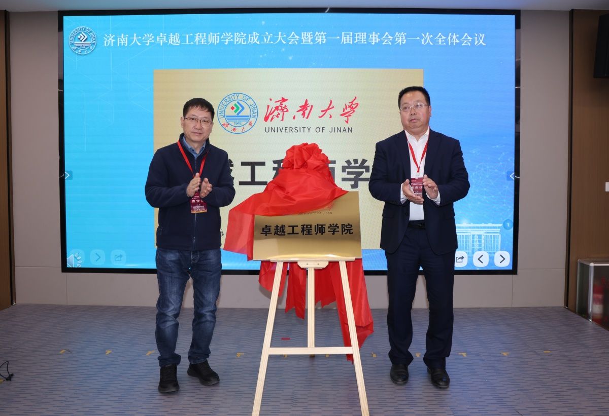 會上,濟南大學卓越工程師學院理事會理事長、濟南大學校長劉宗明、副理事長代表泰山玻璃纖維有限公司董事長呼躍武共同為濟南大學卓越工程師學院揭牌。