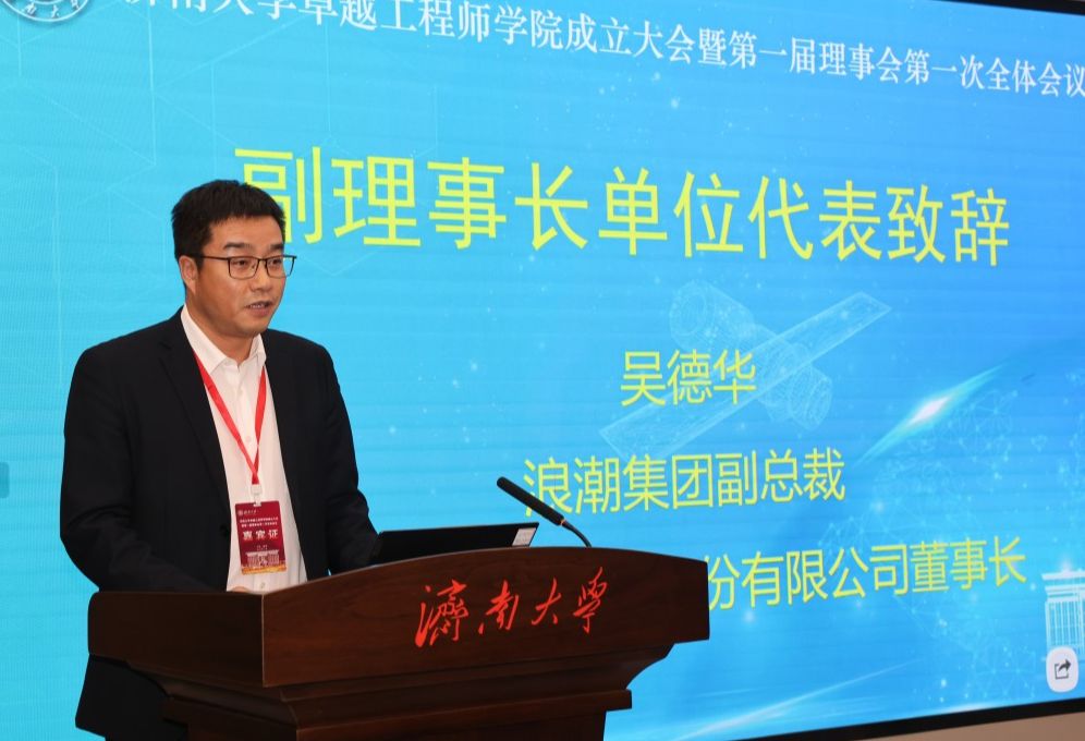卓越工程師學院副理事長、浪潮集團副總裁、山東華光光電子股份有限公司董事長吳德華代表理事單位致辭。他表示,作為副理事長單位,華光光電子股份有限公司將與其他理事單位一起,加強資源統(tǒng)籌、深化校企合作、構(gòu)筑育人平臺,充分發(fā)揮校企雙主體優(yōu)勢,打造事業(yè)發(fā)展共同體,肩負起卓越工程人才培養(yǎng)的重任。