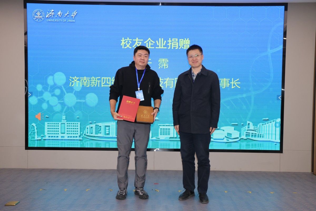 成立大會上,生物科學(xué)與技術(shù)學(xué)院與銀豐生物工程集團(tuán)有限公司、山東佰萃生特殊醫(yī)學(xué)用途配方食品有限公司舉行濟(jì)南大學(xué)實踐教學(xué)基地揭牌儀式;與濟(jì)南新四維生物科技有限公司舉行校友企業(yè)捐贈儀式;為學(xué)院創(chuàng)新創(chuàng)業(yè)校友導(dǎo)師頒發(fā)聘書。