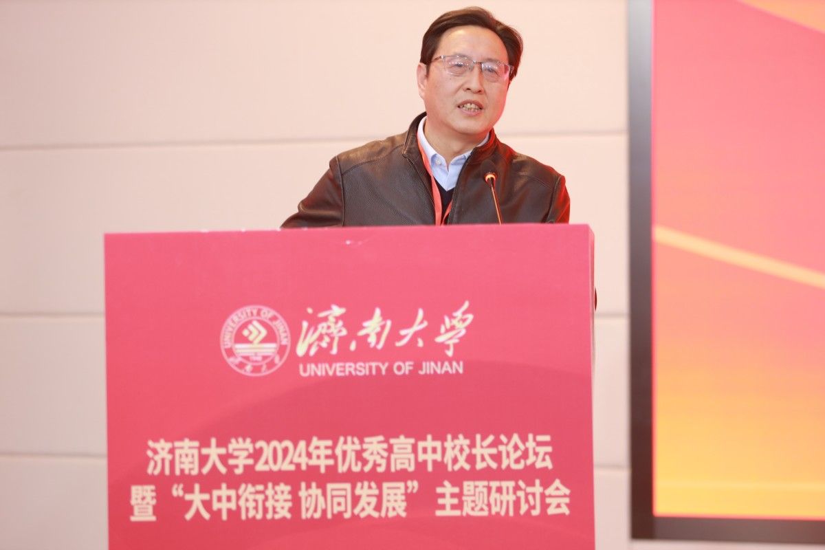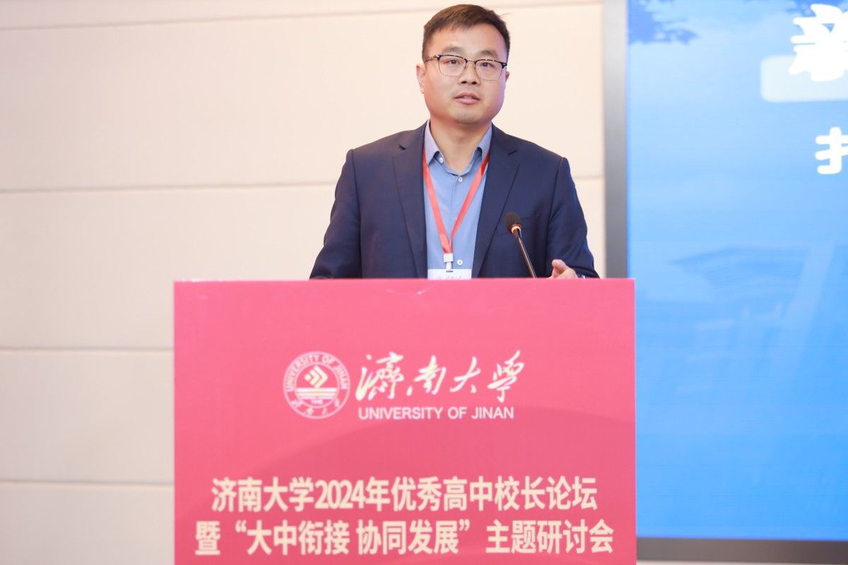 山東省教育招生考試院副院長張明坤首先肯定了濟南大學在山東省教育發(fā)展事業(yè)中做出的突出貢獻。他表示,山東省教育大會上強調“聚力加快高質量教育體系建設,著力辦好公平優(yōu)質的基礎教育、自強卓越的高等教育”,山東省建立健全高等教育和高中教育聯合培養(yǎng)機制,大學與中學銜接,共商人才選拔和教育大計的工作至關重要。本次論壇以“大中銜接 協同發(fā)展”為主題,搭建了高校和高中深度交流的平臺,也體現了濟南大學在教育模式改革探索中的使命擔當。