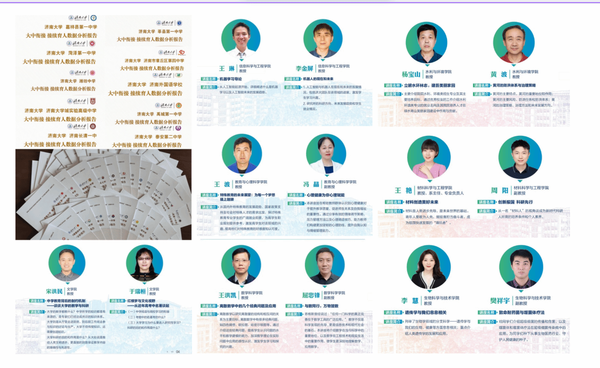 學校還為參會的優(yōu)質生源高中制作了《大中銜接 接續(xù)育人數據分析報告》,報告將各高中近年來畢業(yè)生錄取分數、錄取專業(yè)以及在濟大學習期間獲獎等情況作了詳細的分析,還附上了濟南大學在校生給高中母校的感恩與祝福。