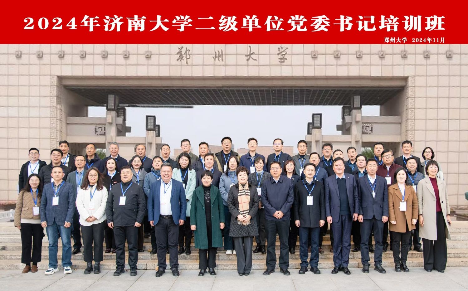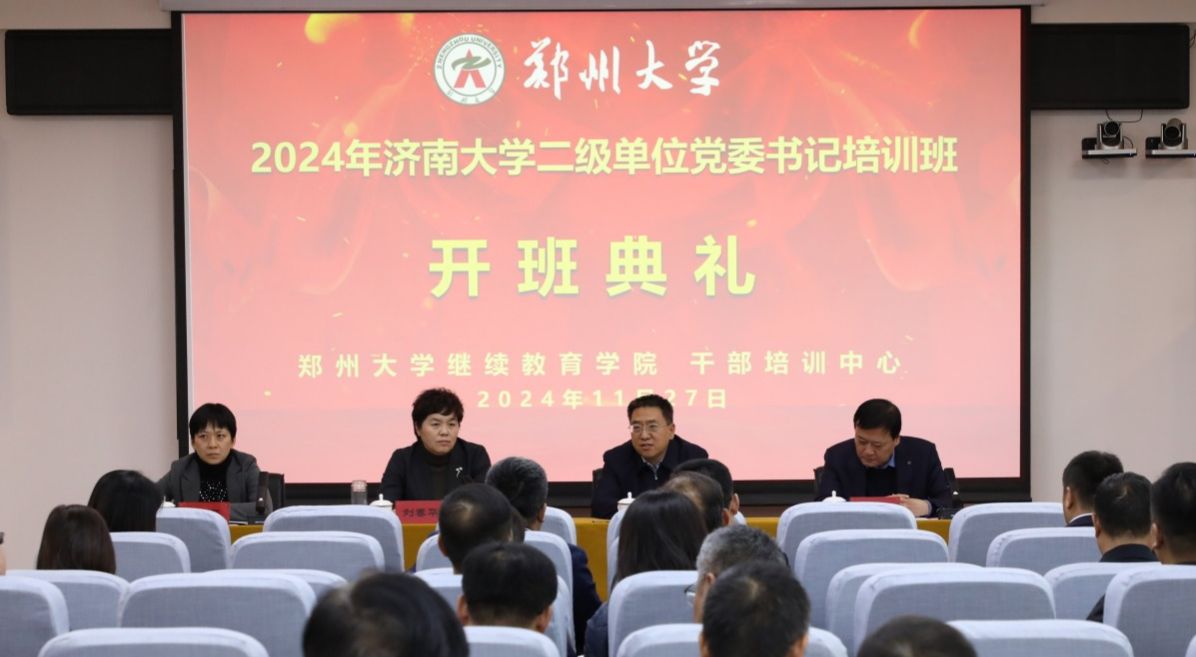 為深入學(xué)習(xí)貫徹黨的二十屆三中全會(huì)精神,貫徹落實(shí)全國教育大會(huì)精神,進(jìn)一步提升我校黨建“雙創(chuàng)”工作水平,推進(jìn)學(xué)?!耙蝗陔p高”建設(shè),推動(dòng)黨建工作提質(zhì)增效,學(xué)校于11月27日至29日在鄭州大學(xué)舉辦2024年濟(jì)南大學(xué)二級單位黨委書記培訓(xùn)班。學(xué)校黨委書記劉春華在開班儀式上作動(dòng)員講話,鄭州大學(xué)黨委書記別榮海出席儀式致歡迎辭并向?qū)W員代表授班旗。培訓(xùn)班由學(xué)校黨委副書記商華帶隊(duì),有關(guān)職能部門負(fù)責(zé)人、各二級單位黨委書記參加。