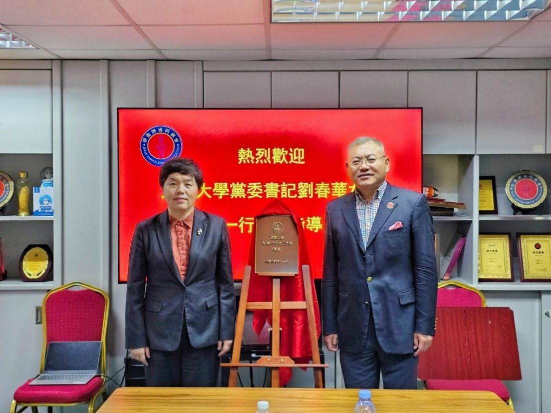 在香港濟南同鄉(xiāng)會,劉春華與香港濟南同鄉(xiāng)會會長、省政協(xié)委員林東明共同為濟南大學海(境)外人才學術交流中心(香港)揭牌。在座談會上,雙方就如何進一步深化教育領域的合作、共同開展招才引才工作等議題展開了深入探討。