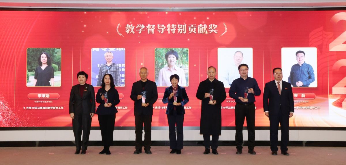 大會表彰階段,在教育教學(xué)工作中表現(xiàn)突出的個人和集體依次上臺領(lǐng)獎。當(dāng)獲得“教學(xué)成果獎”“教學(xué)榮譽獎”“教學(xué)比賽獎”“課程建設(shè)獎”“優(yōu)秀輔導(dǎo)員獎”“高水平教材獎”“基層教學(xué)組織獎”“優(yōu)秀指導(dǎo)教師獎”以及“教學(xué)督導(dǎo)特別貢獻獎”等9個獎項的獲獎代表,從校領(lǐng)導(dǎo)手中接過獎杯和證書的時候,全場響起了熱烈的掌聲。